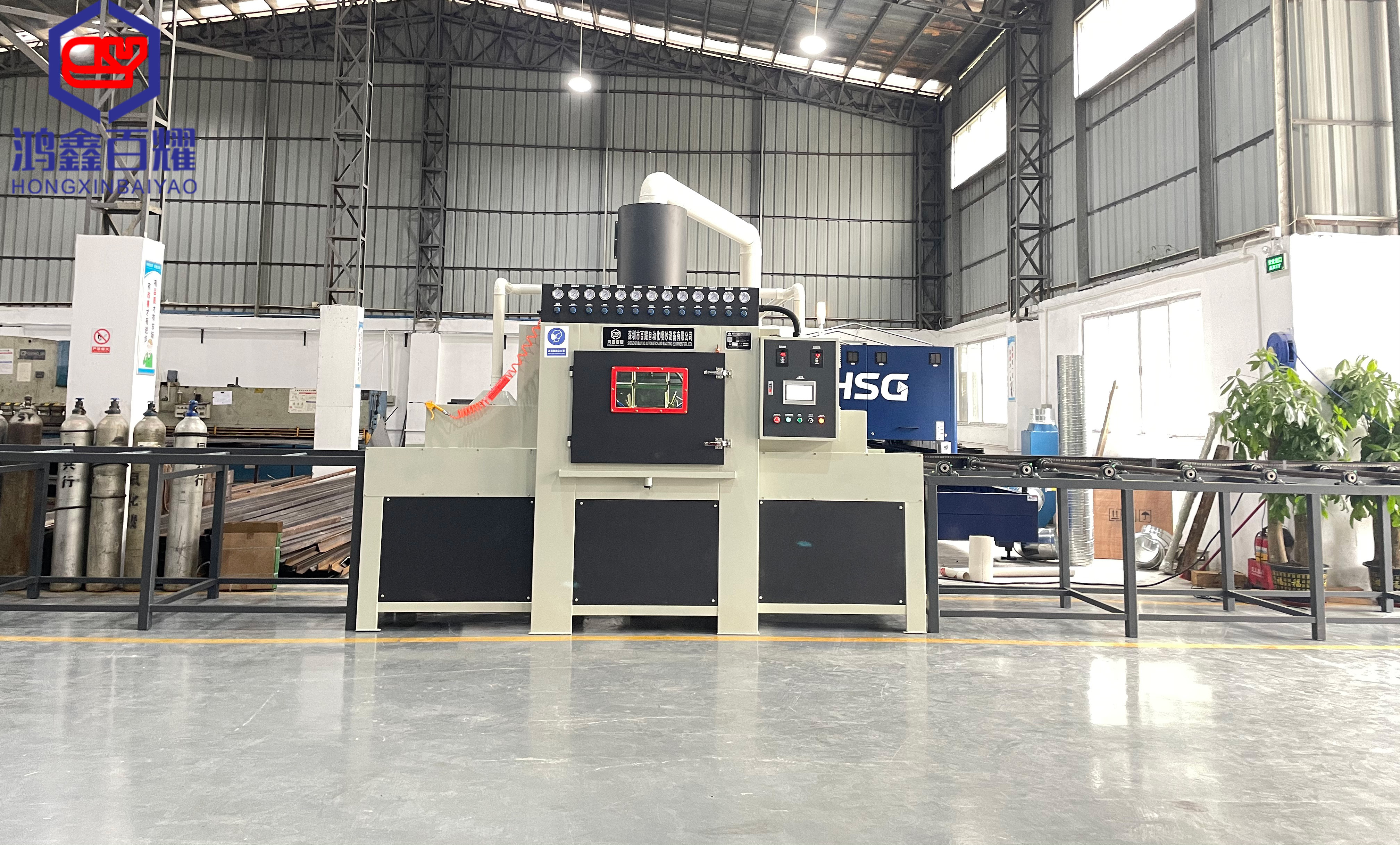 4. 适配场景与工件:常用于建材、机械、五金等行业,比如长钢管、角钢、槽钢等型材,以及超长不锈钢板材、玻璃钢板、大型装饰型材等;也适合不粘锅烤盘、长条形通讯器材外壳等批量长线生产的工件,能对接后续涂装、装配工序实现连续化生产线作业。