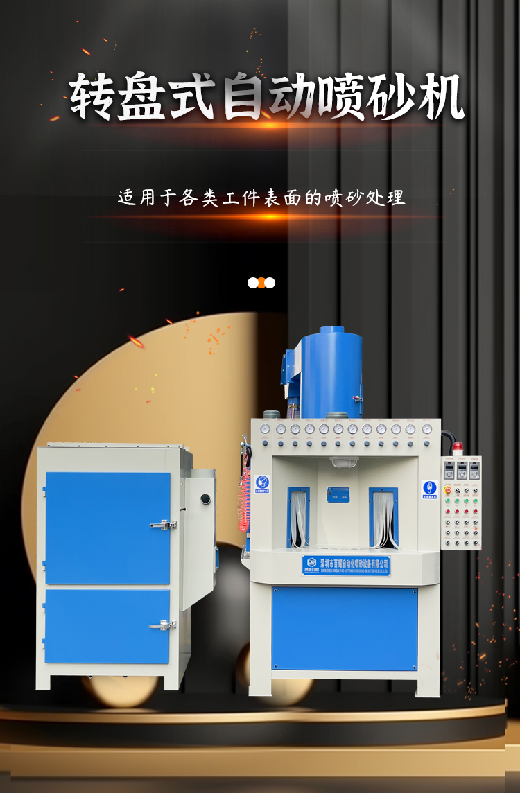 - 转盘带动工件 360° 旋转,配合多方位喷枪,实现无死角均匀喷砂。