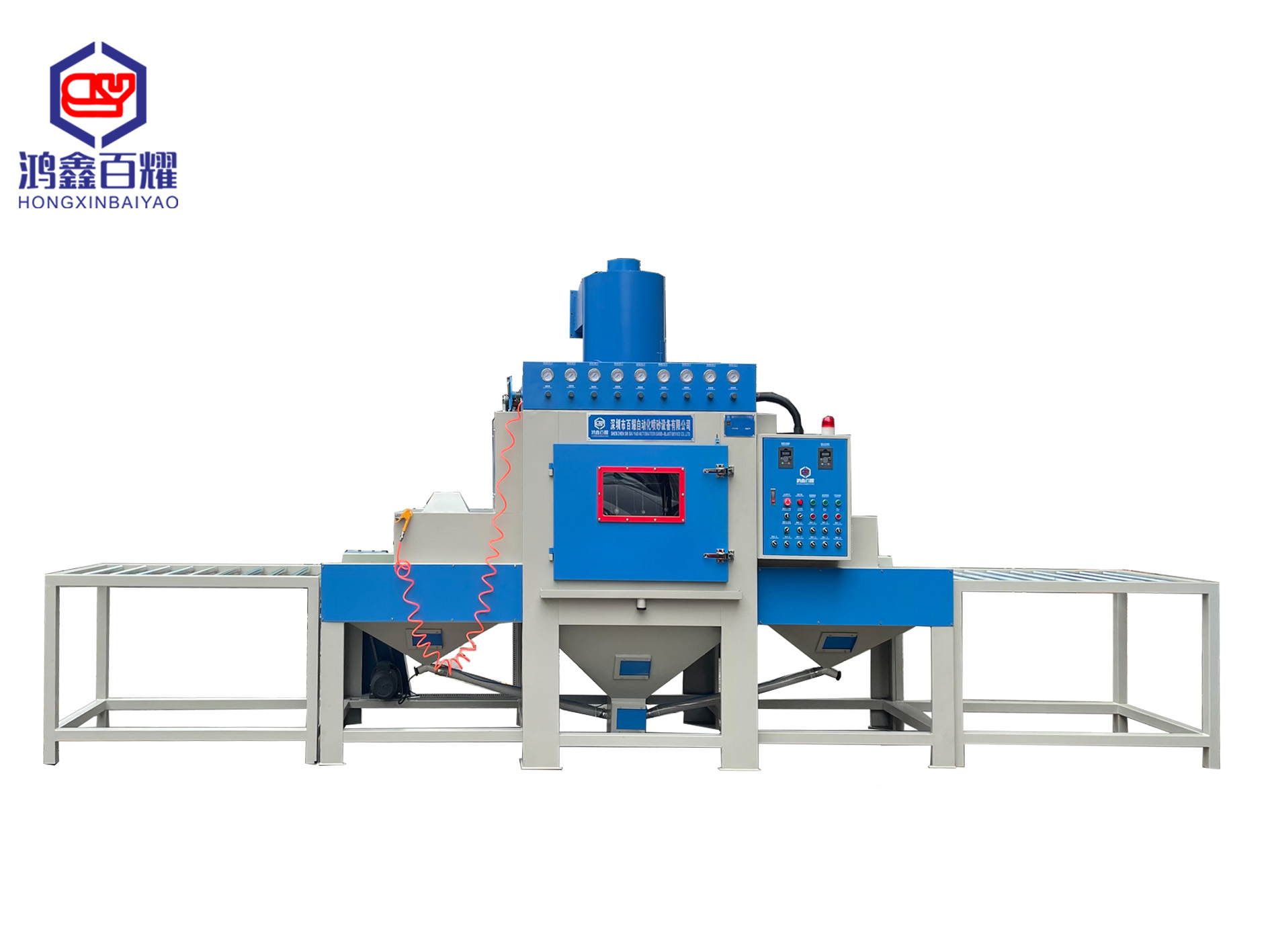 - 适配输送节奏:支架高度、间距可调节,能匹配不同尺寸(厚度、宽度)的工件,确保工件与喷砂枪头保持最佳距离。