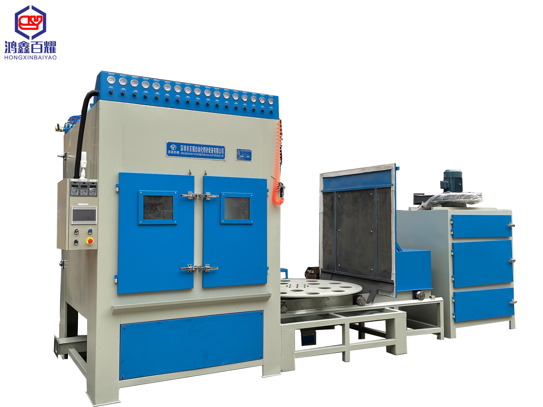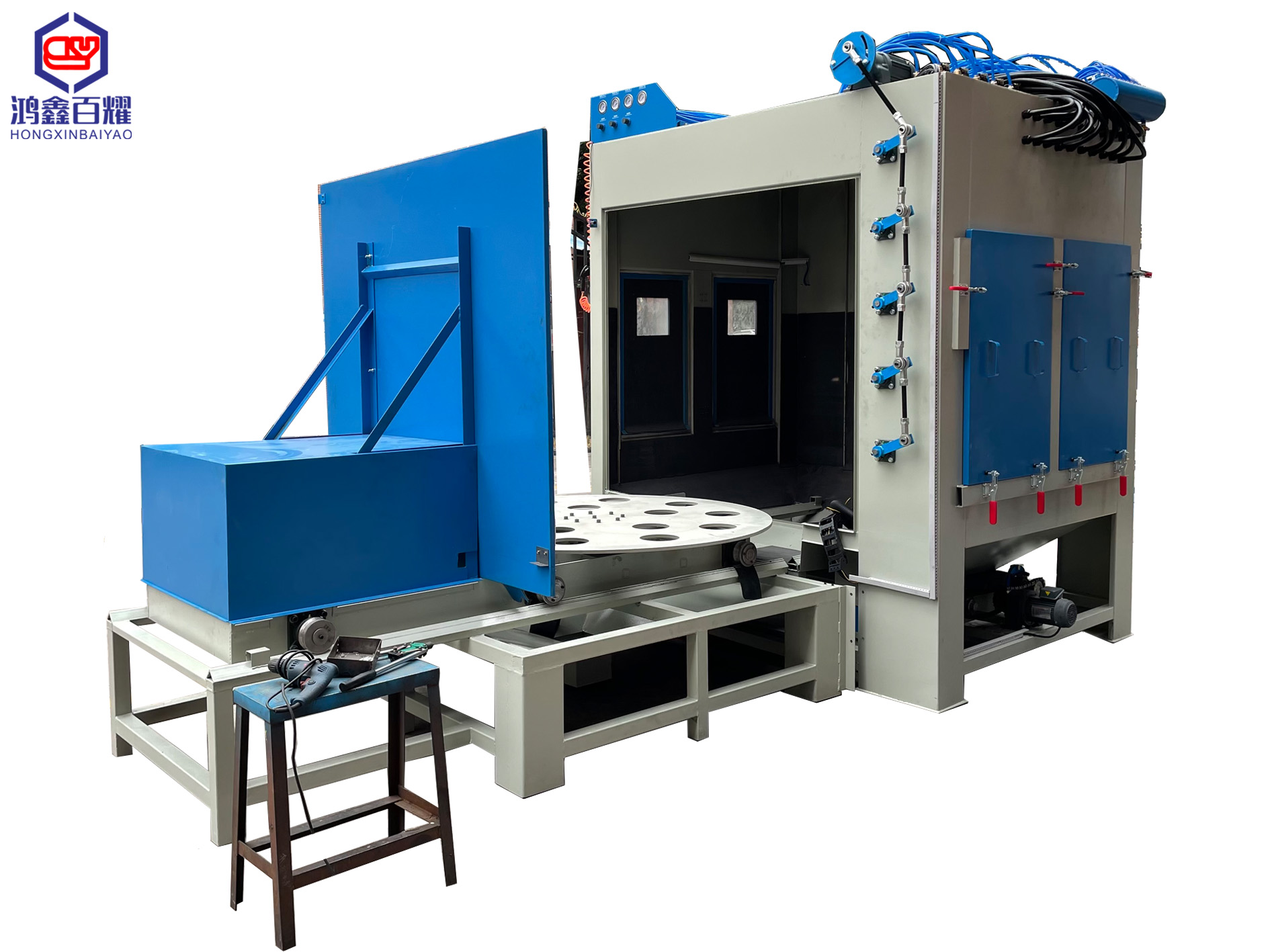 - 百耀支持全维度非标定制:① 承载能力定制(5-100 吨);② 转盘尺寸定制(根据工件最大外形设计);③ 喷砂枪数量与布局定制(针对复杂结构工件优化喷枪角度);④ 自动化程度定制(手动 / 半自动 / 全自动 PLC 控制,可联动生产线实现无人化作业);⑤ 特殊工况适配(如高温、高湿、防爆环境,配备专用密封、防腐、防爆装置)。