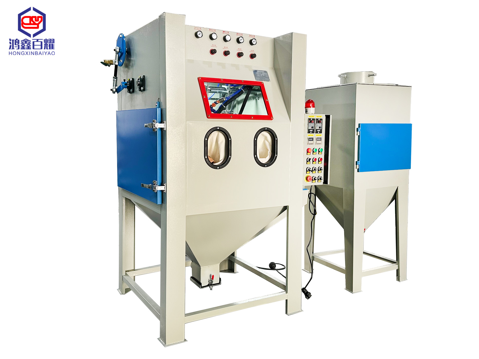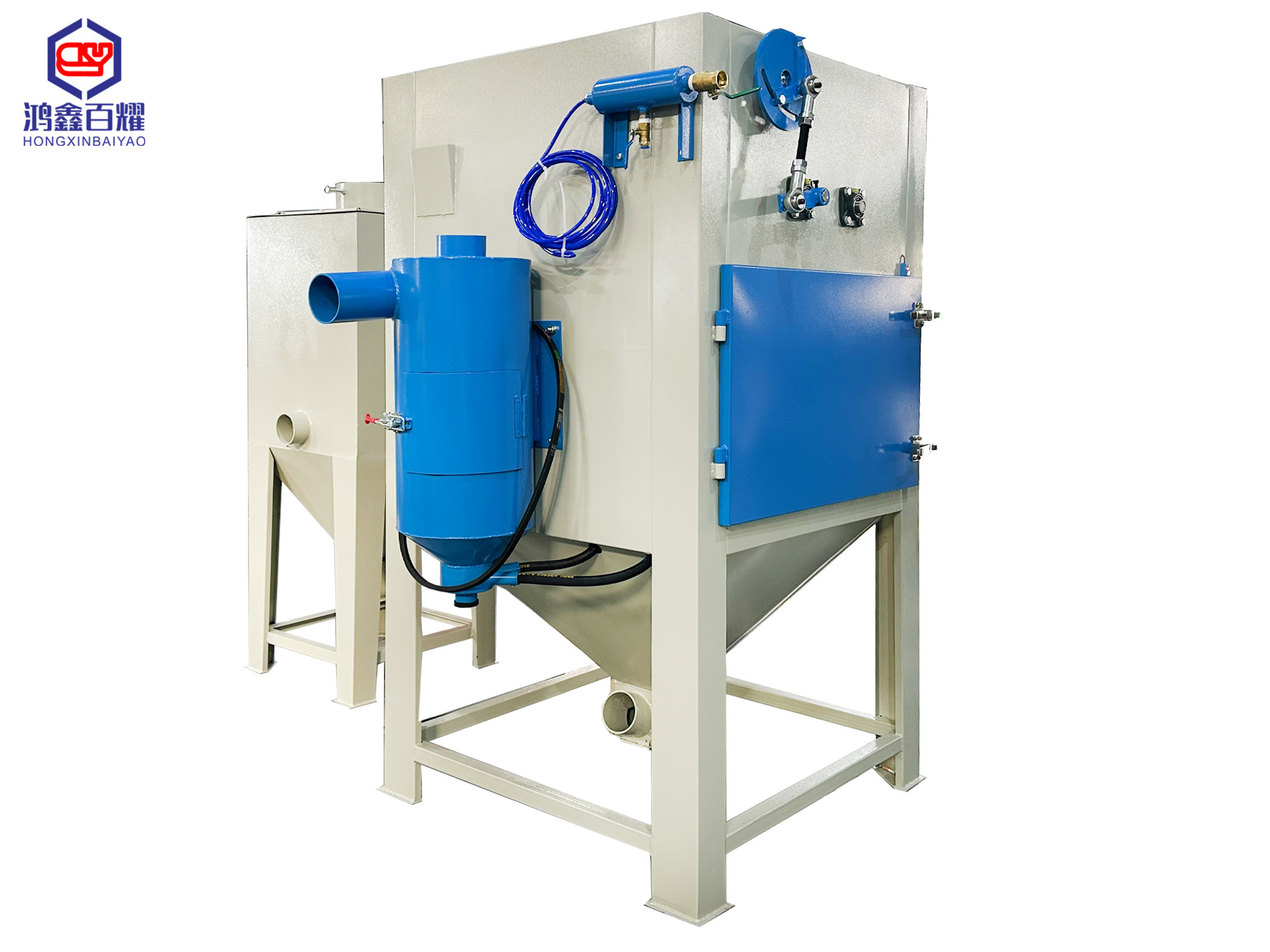 2. 密闭无尘舱体 + 环保除尘系统设备采用全密闭式设计,观察窗用双层防爆玻璃,既能看清内部喷砂状态,又能隔绝粉尘飞溅。右侧的一体式除尘箱高效过滤,粉尘排放完全达标,车间里再也不会灰蒙蒙,工人戴手套在舱内操作更安全,环保检查直接躺赢